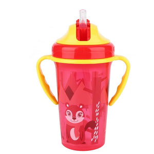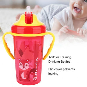 This toddler training drinking bottle is designed for young children who are learning to drink from a cup. It features two easy-grip handles and a flip cover that prevents leaking, making it a practical and convenient option for parents. The bottle's colorful design and cartoon character add a playful touch, making it appealing to kids and encouraging them to use it. The bottle is made of durable material and is easy to clean, ensuring that it can withstand regular use. Overall, this training bottle is a great tool to help toddlers transition from bottles or breast milk to regular cups.
