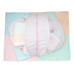 A comprehensive baby bedding set designed for comfort and safety. Includes a carry nest, bolsters, pillows, mattress, and a baby bed with a foldable mosquito net.