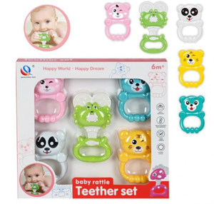 5 Piece Baby Rattle and Teether Set! This set includes 5 different rattles and teethers designed to soothe and entertain your little one. Made from soft, BPA-free materials, these rattles and teethers are safe for your baby's sensitive gums and provide relief during teething. Colorful designs and fun sounds capture your baby's attention and support sensory development. Perfect for newborns and infants!"
